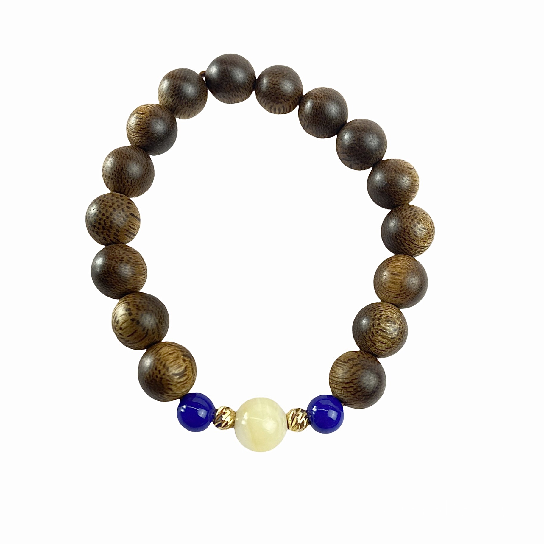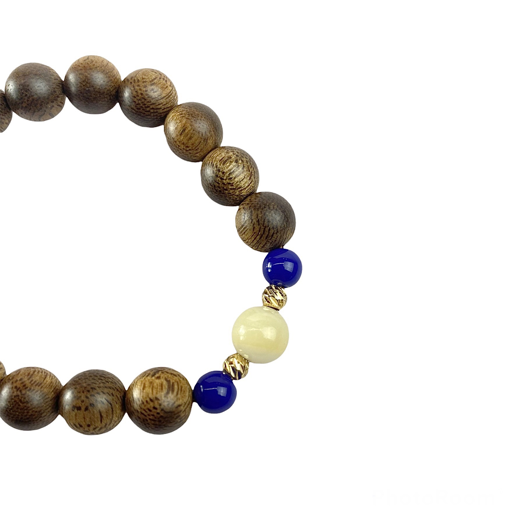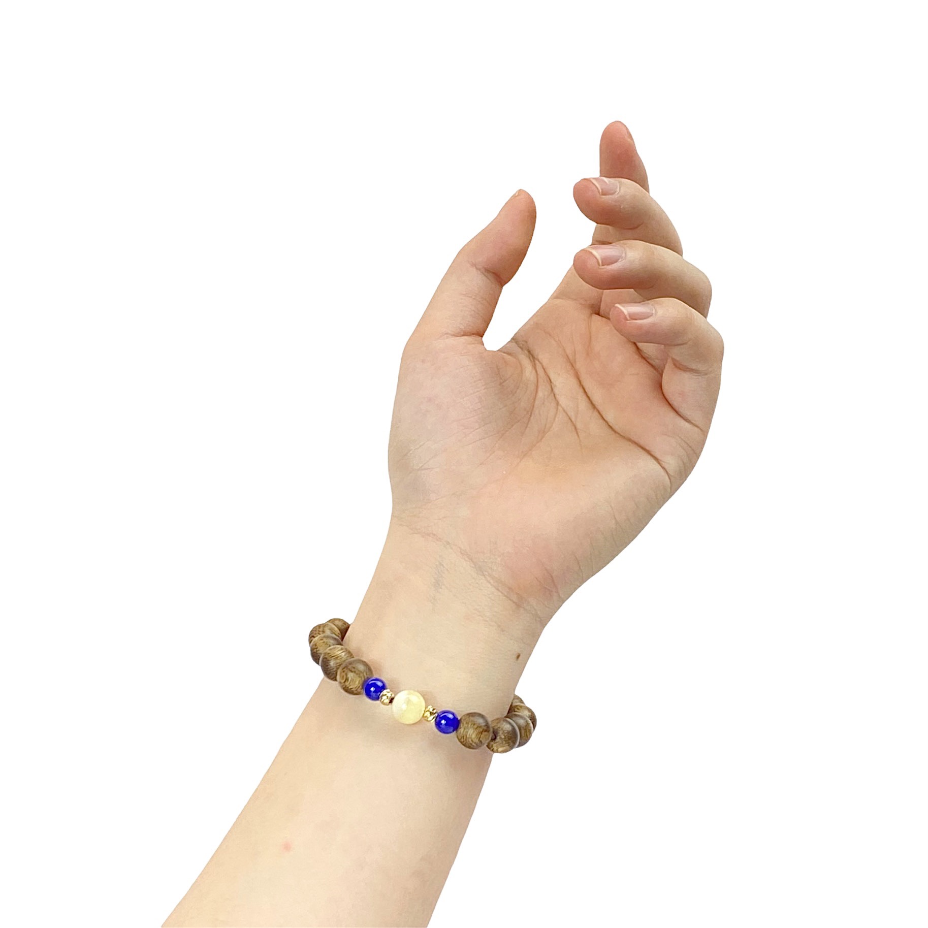 - Hạt chuỗi được chế tác từ gỗ trầm hương tự nhiên, phối hạt vỏ ngọc trai và hạt thanh kim.