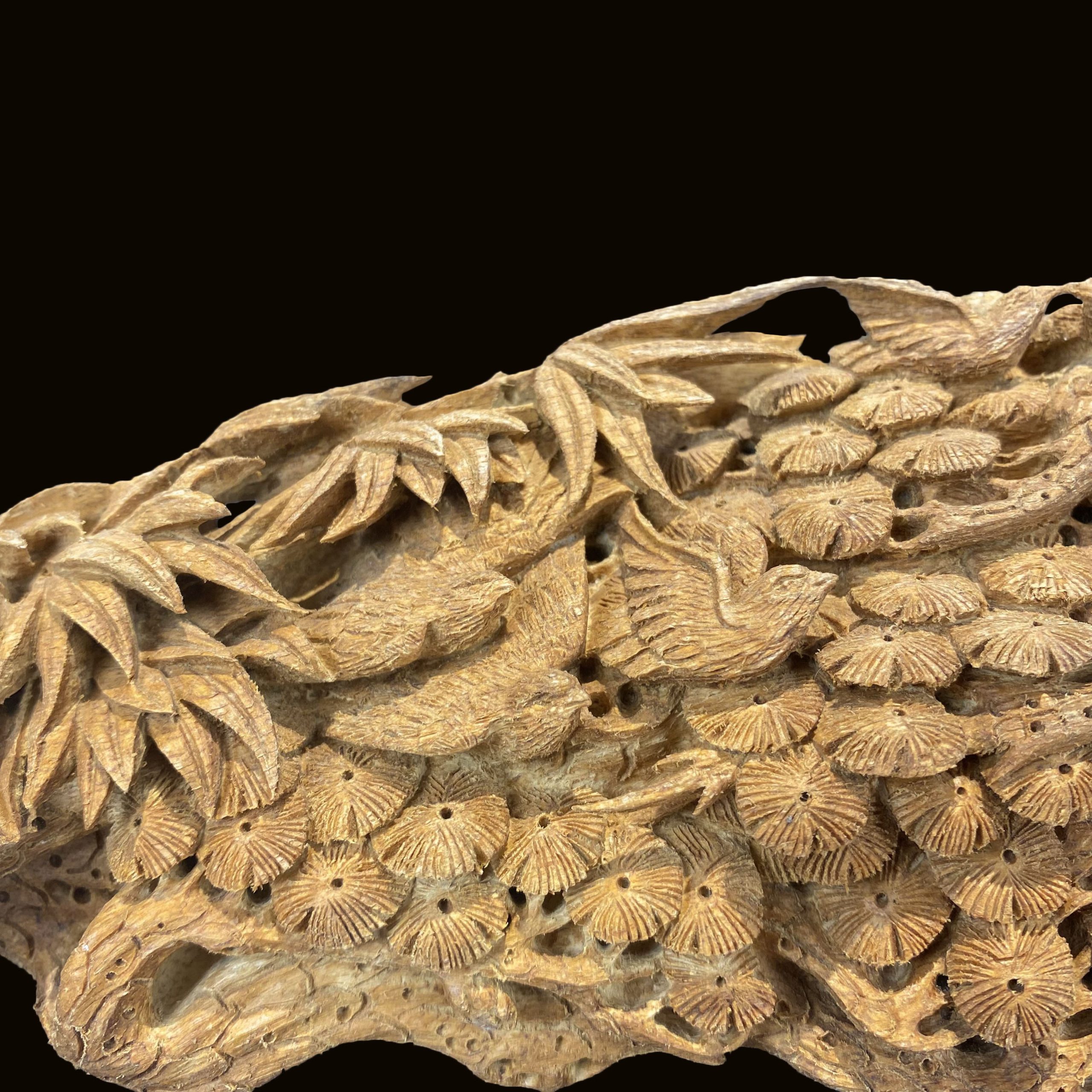 - Chạm khắc cây Cúc đại diện cho mùa thu, hoa cúc là biểu tượng của sự trường thọ, phúc lộc, mang lại may mắn.